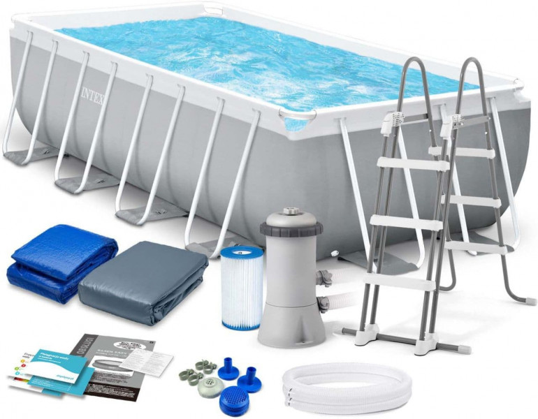 Бассейн каркасный прямоугольный (488х244х107см)+насос-фильтр,лестница,тент,подстилка 1 шт/упак Intex 26792